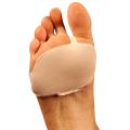 The Bunga Metatarsal Gel Strap has a 1/4" gel cushion embedded in a durable, elastic sleeveing covering all five metatarsal heads. This gel is superior to other materials in its ability to reduce pain caused by pressure, shock, and vibration. Use as a soft tissue supplement to fat pad atrophy. (loss of foot padding). This pad is used by runners, walkers, seniors and those with the need to cushion and protect the "balls of thier feet". If you have callousing on the balls of your feet ask for the Metatarsal Gel Strap with exposed gel to reduce and eliminate your calluses and dry skin.